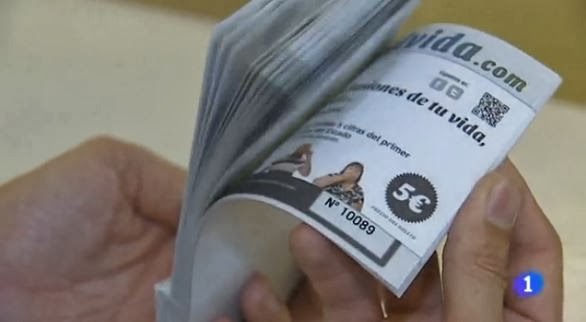 Hace mucho tiempo que llegar a la conclusión de que encontrar un trabajo es casi como una lotería no es descabellado (lo digo por propia experiencia). Pero la verdad es que la literalidad del asunto que vemos en esta noticia asusta un poco. Como dicen algunas personas que participan en la pieza, se frivoliza con un drama muy serio y se juega con la desesperación de la gente, que se va a dejar cinco euros por rifa a ver si suena la flauta. Cinco euros (multiplicados por x, claro, que más rifas compradas son más opciones de éxito...) que pueden suponer mucho para algunas de esas personas. Y una posibilidad entre 100.000, que son los boletos que han puesto a la venta.